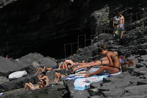 2008, Portovenere, Byron's grotto. Swimming hard to compensate the club foot.