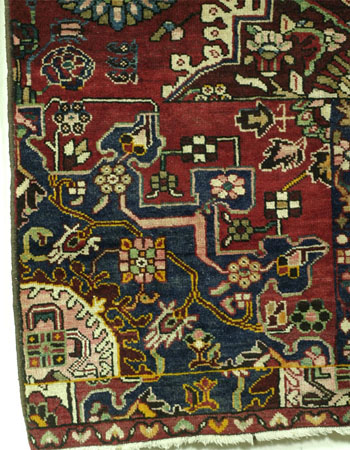 The type of weave and the floral but angular geometric design point to Bakhtiari origin. The wagireh was probably made by sedentary Kurds or Luri living in the Chahar Mahal Province, whose products are traded as Bakhtiari (not by the nomadic Bakhtiari tribe). I estimate the time of production to be between 1950-1970.