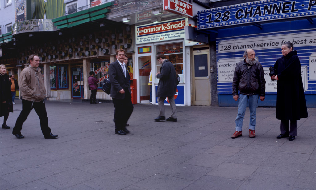 A range of composites, each made from material out of series of 24 photographs taken within a few minutes in the Reeperbahn area, Hamburg, between Oct 1999 and Nov 2000. Here are a few words about Strassenszenen.